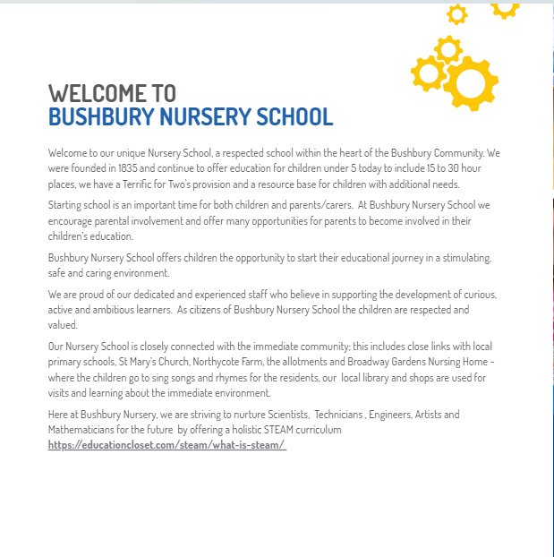 WELCOME TO BUSHBURY NURSERY SCHOOL